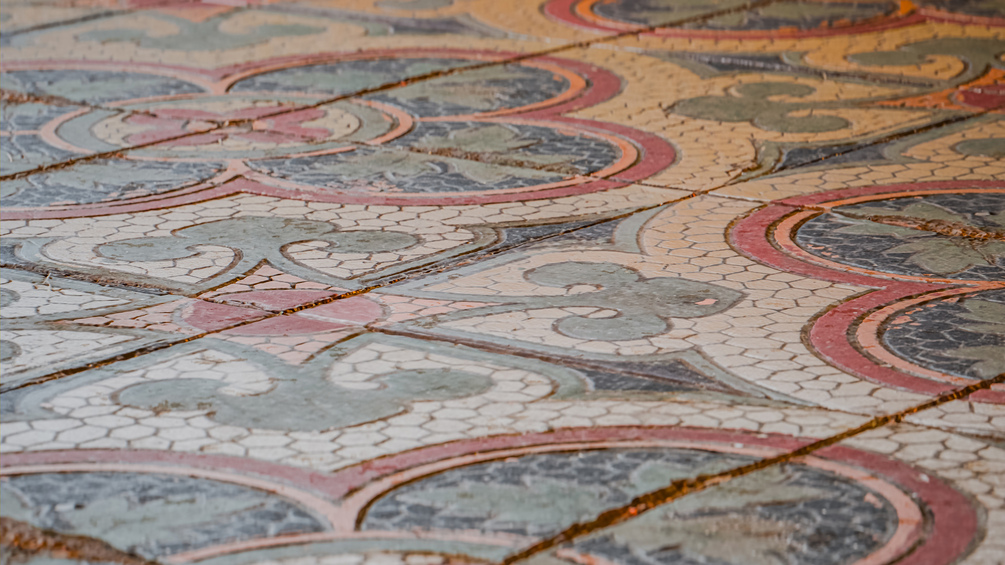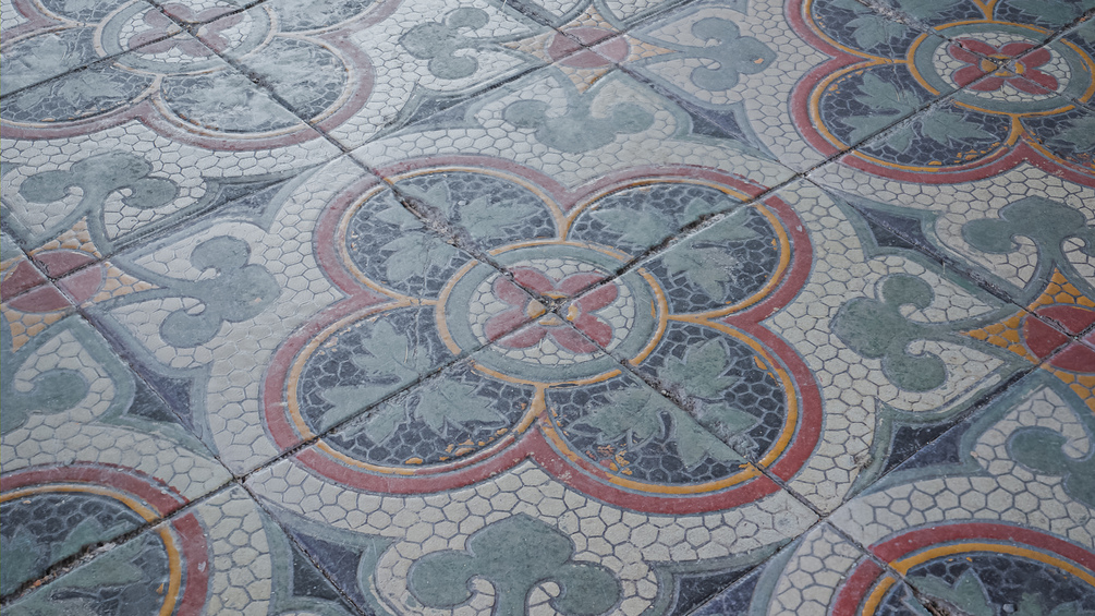 A late XIX / early XX century tile from a post-german silesia region. Photocaptured material, 4k texture set including: diffuse, AO, specular, roughness, normal, height, coat and sheen map.